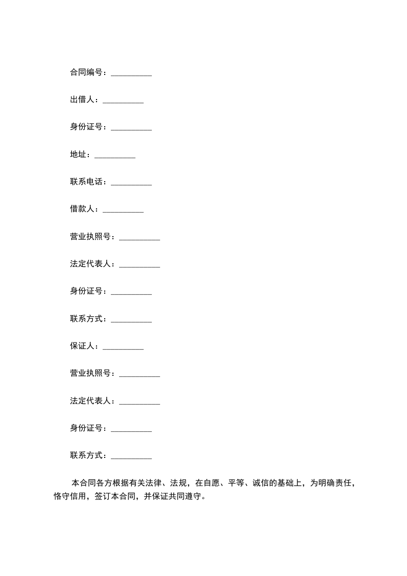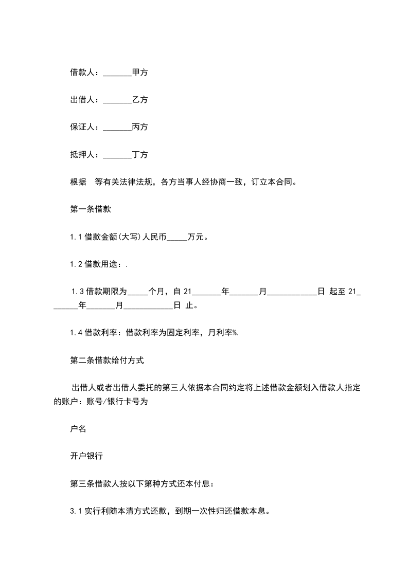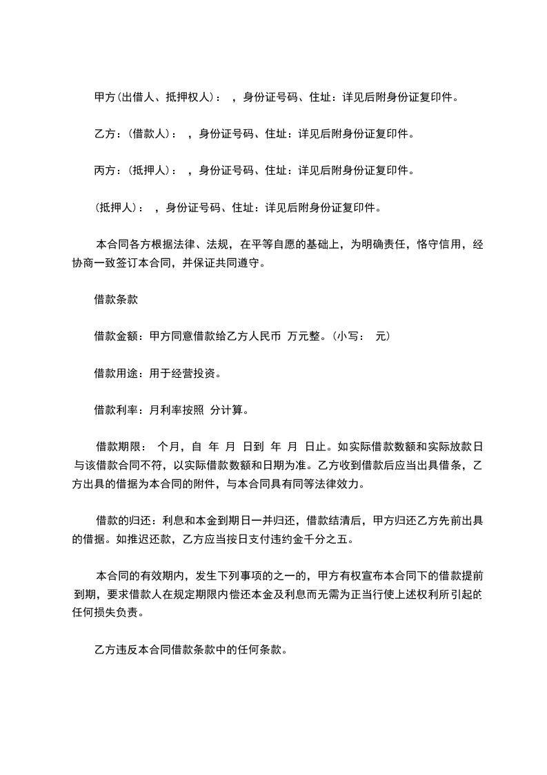 借款期限: 个月,自 年 月 日到 年 月 日止。如实际借款数额和实际放款日与该借款合同不符,以实际借款数额和日期为准。乙方收到借款后应当出具借条,乙方出具的借据为本合同的附件,与本合同具有同等法律效力。