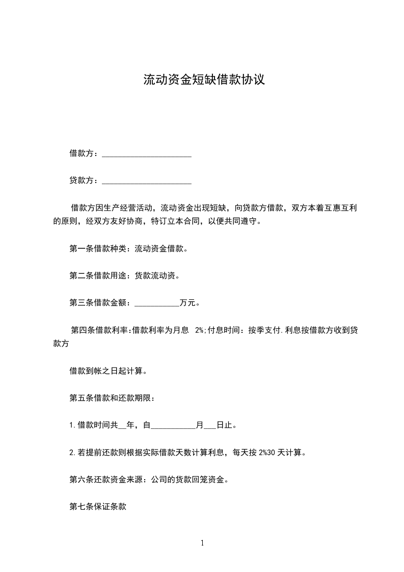 第一条 借款用途