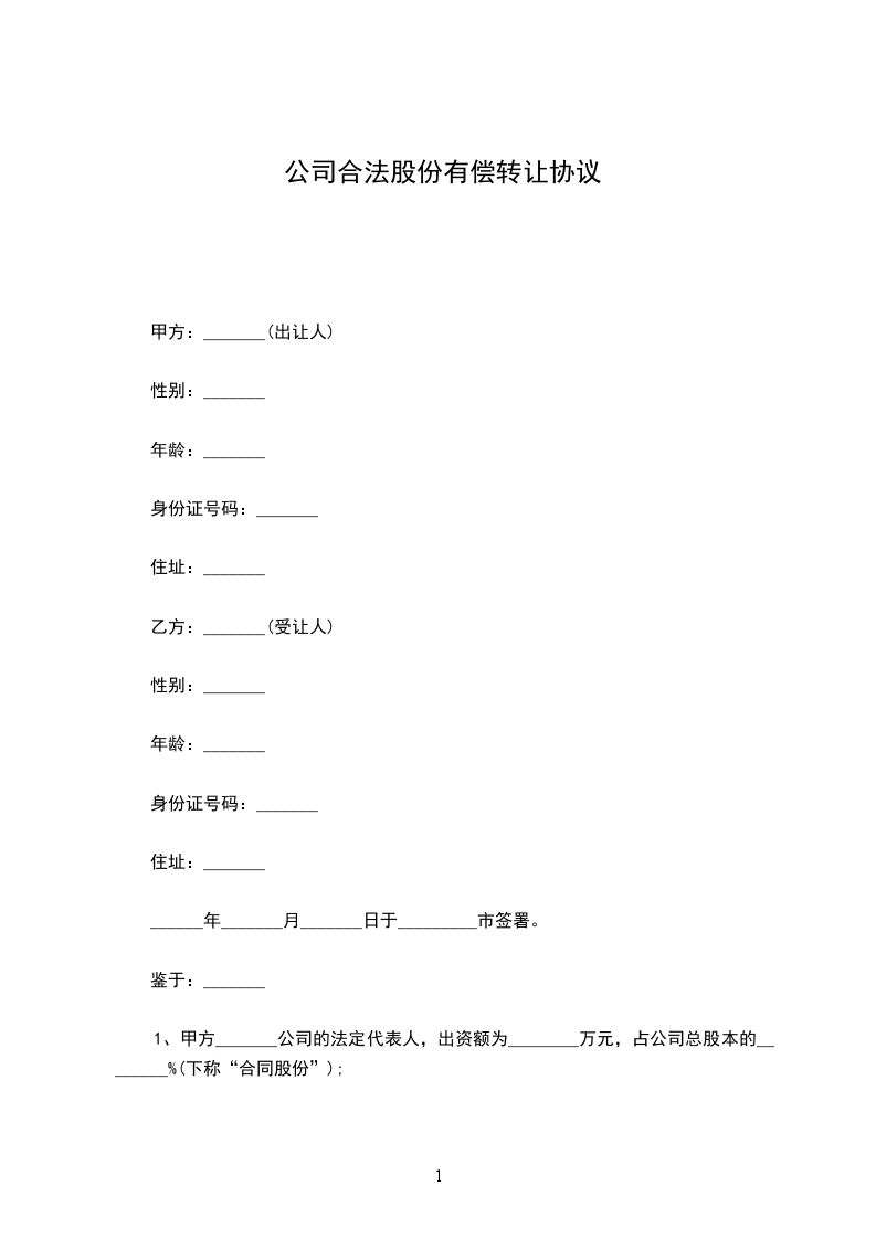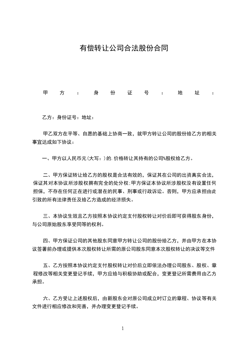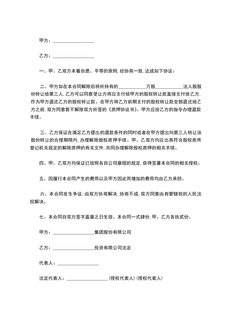 1、甲方同意将持有广东公司 %的股份共 元出资额,以 万元转让给乙方,乙方同意按此价格及金额购买上述股份。