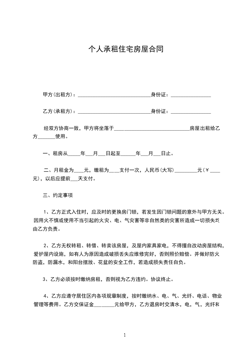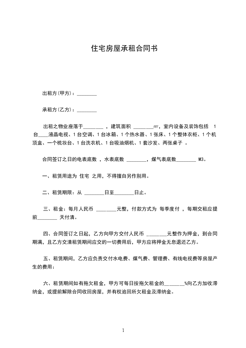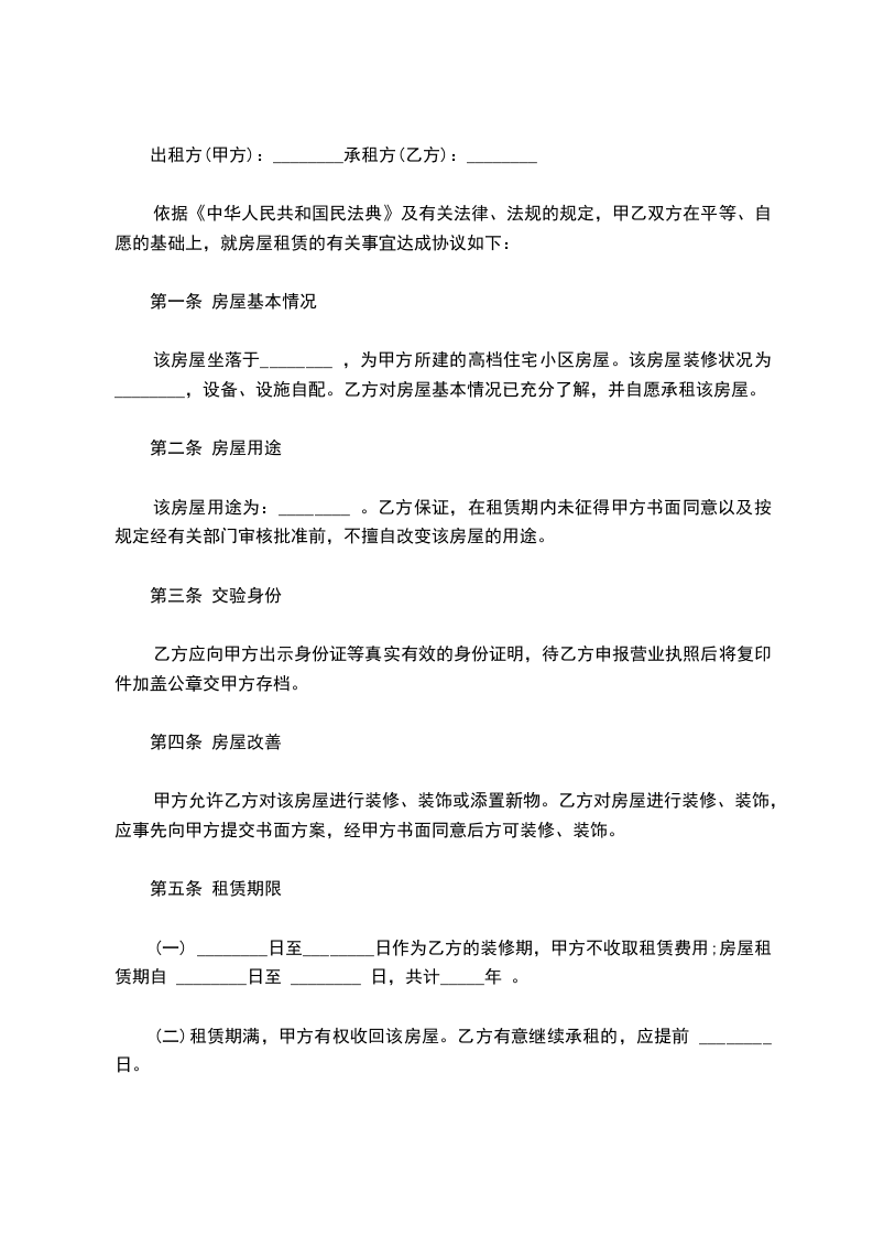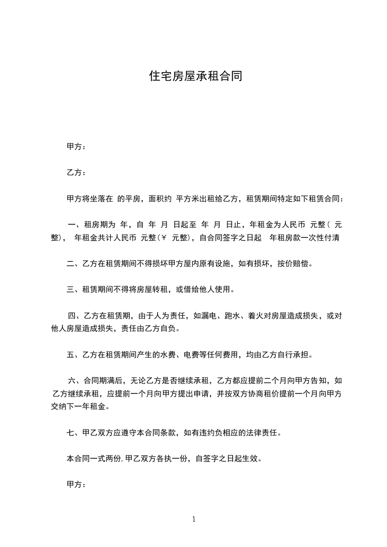 一、租房期为 年,自 年 月 日起至 年 月 日止,年租金为人民币 元整( 元整), 年租金共计人民币 元整(¥ 元整),自合同签字之日起 年租房款一次性付清。