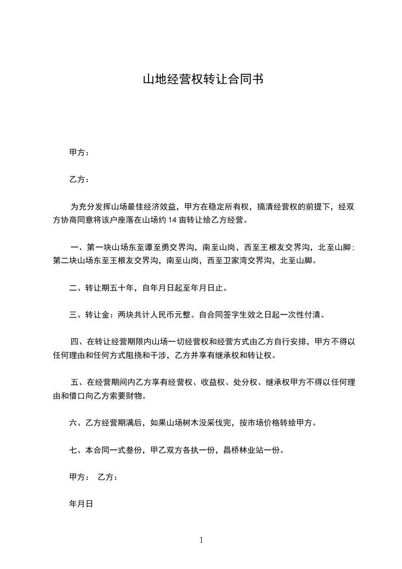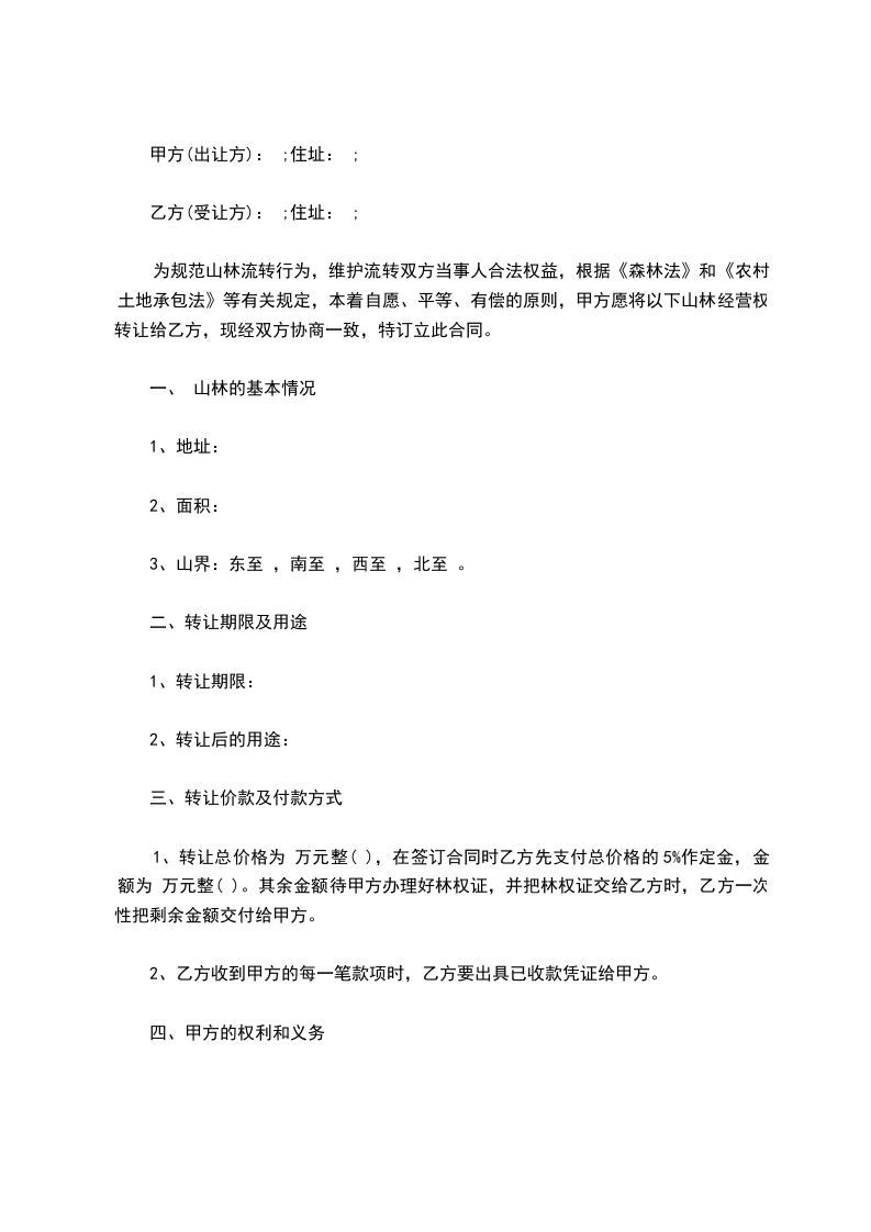 四、在转让经营期限内山场一切经营权和经营方式由乙方自行安排,甲方不得以任何理由和任何方式阻挠和干涉,乙方并享有继承权和转让权。
