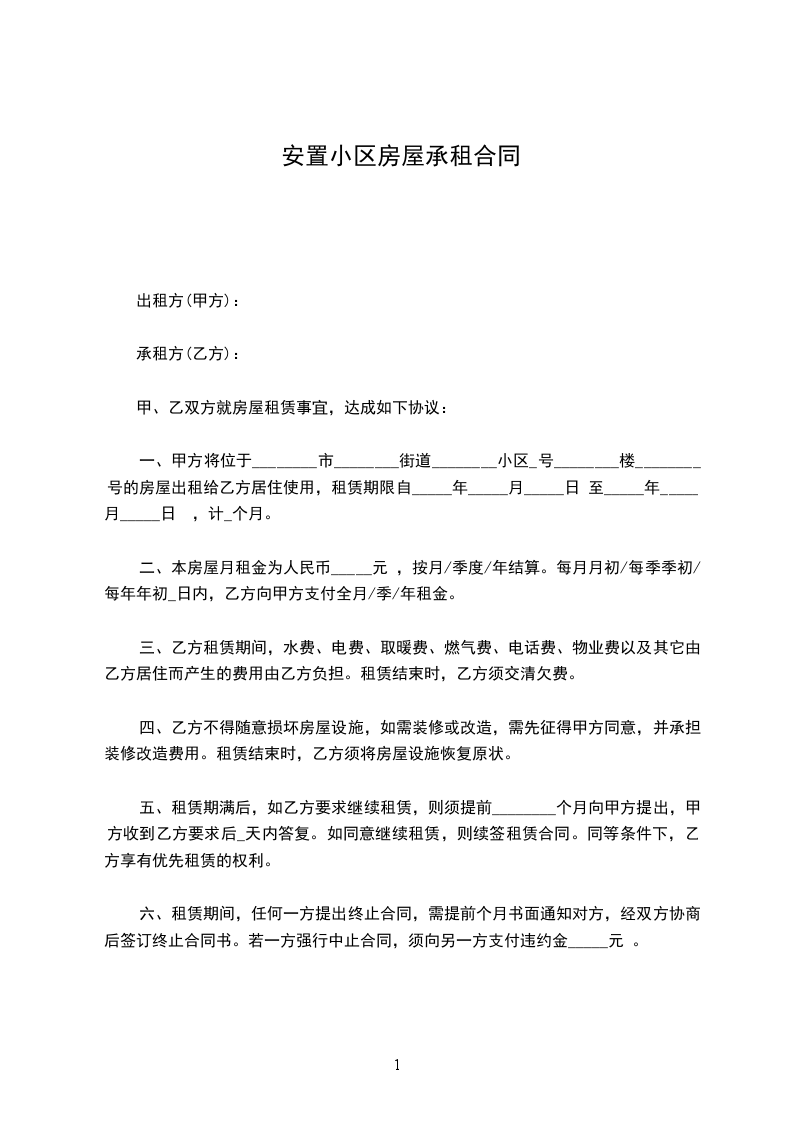 甲方将在安置小区一套平方米房屋让售给乙方,经双方在自愿、平等和协商后达成协议。