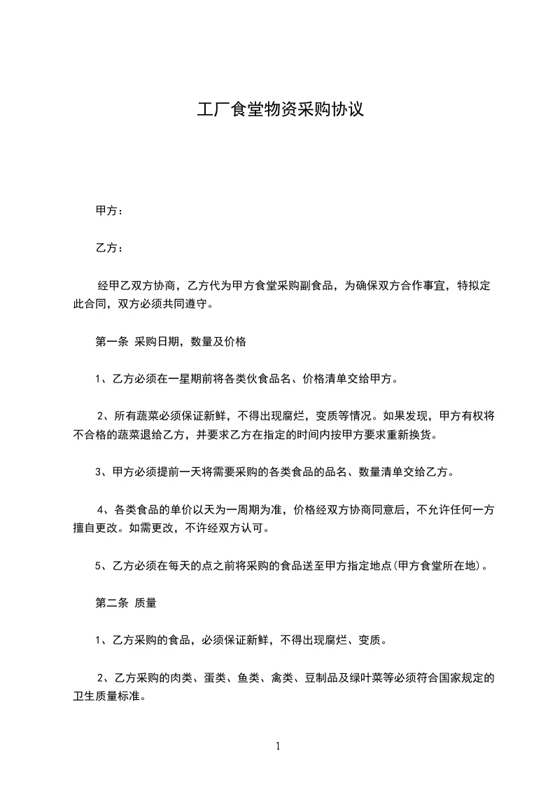 经甲乙双方协商,乙方代为甲方食堂采购副食品,为确保双方合作事宜,特拟定此合同,双方必须共同遵守。
