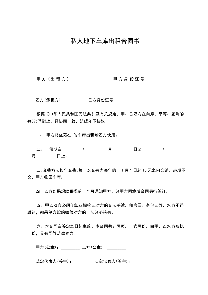 三、交费方法按年交费,每一次交费为每年的1月1日起15天之内交纳。逾期不交,甲方收回车库。