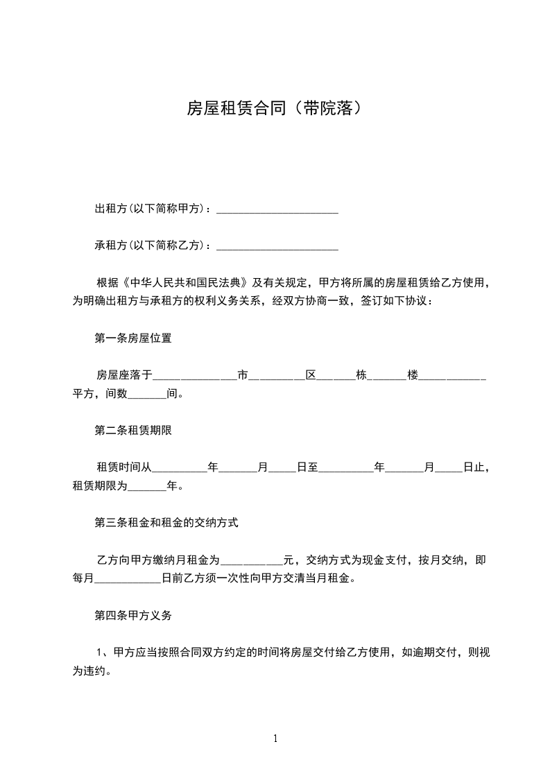 甲、乙双方就乙方继续承租双方于______年____月____日签定的《房屋租赁合同》所属房屋院落一事达成如下协定: