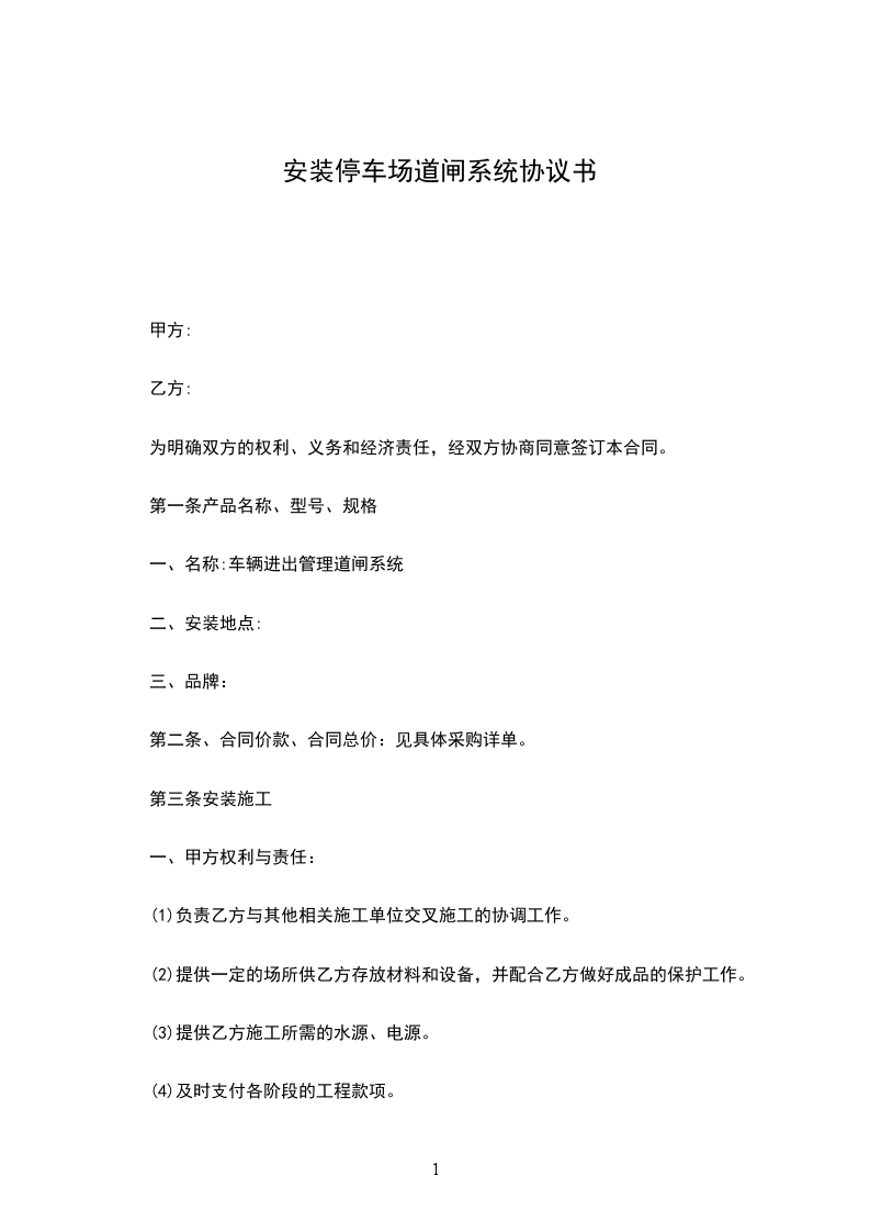 第五条合同价款的支付合同签订后,安装调试完成,通过甲方验收将以转账的方式给予乙方所需道闸款项。
