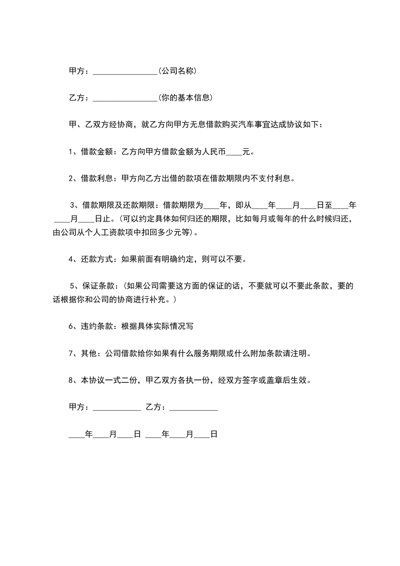 甲、乙双方经协商,就乙方向甲方无息借款购买汽车事宜达成协议如下: