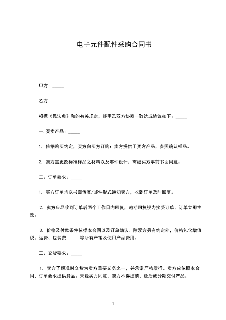 四、货款结算方式:需方支付方式为银行转账款到发货,户名: 账号: 开户银行: 。