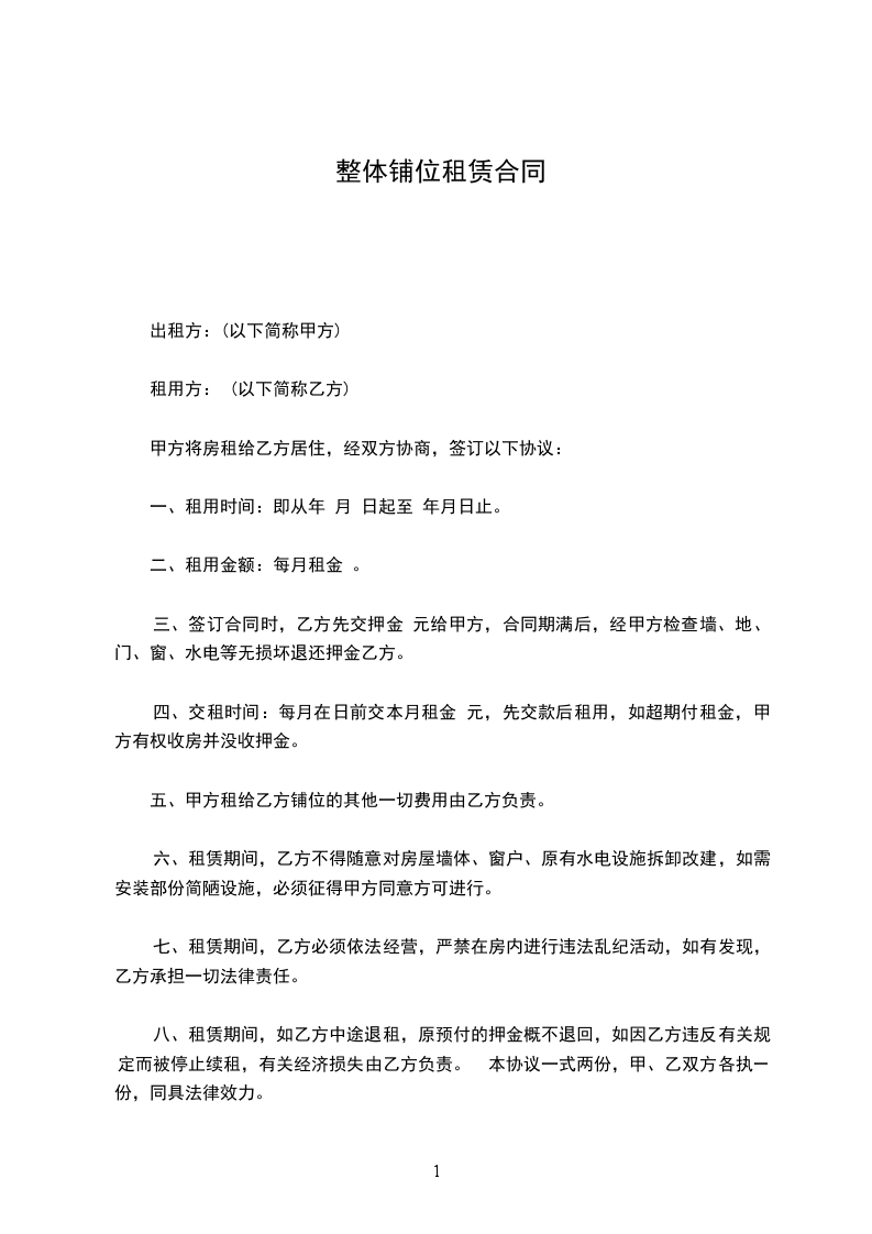 七、租赁期间,乙方必须依法经营,严禁在房内进行违法乱纪活动,如有发现,乙方承担一切法律责任。