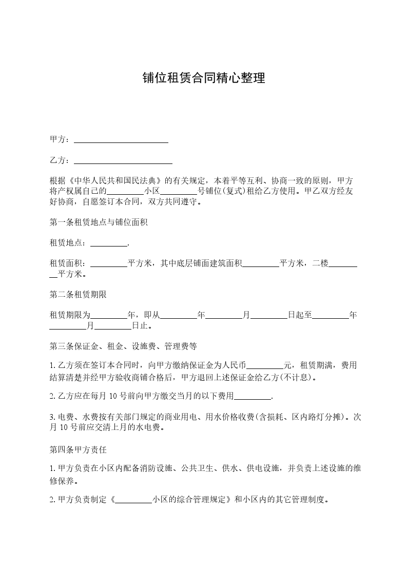 五、甲方租给乙方铺位的其他一切费用由乙方负责。