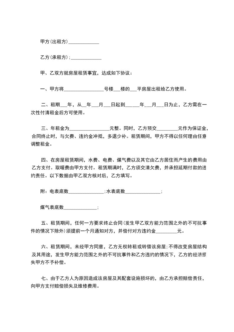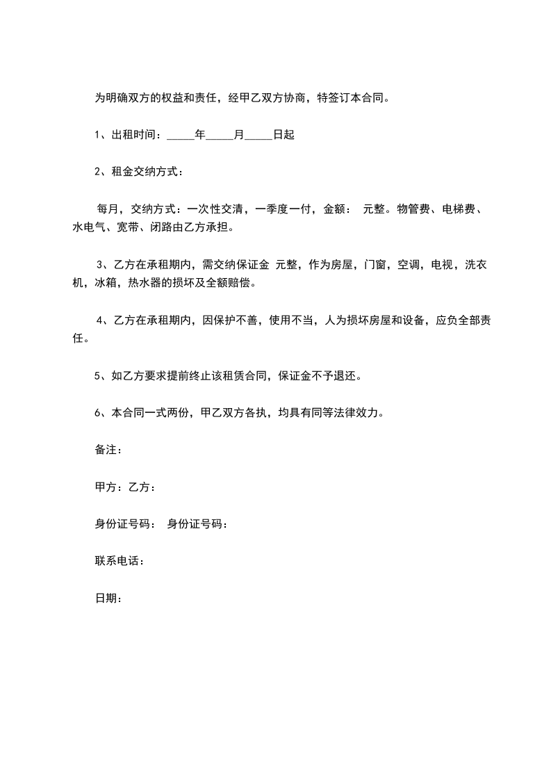 3、乙方在承租期内,需交纳保证金 元整,作为房屋,门窗,空调,电视,洗衣机,冰箱,热水器的损坏及全额赔偿。