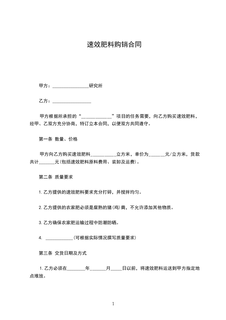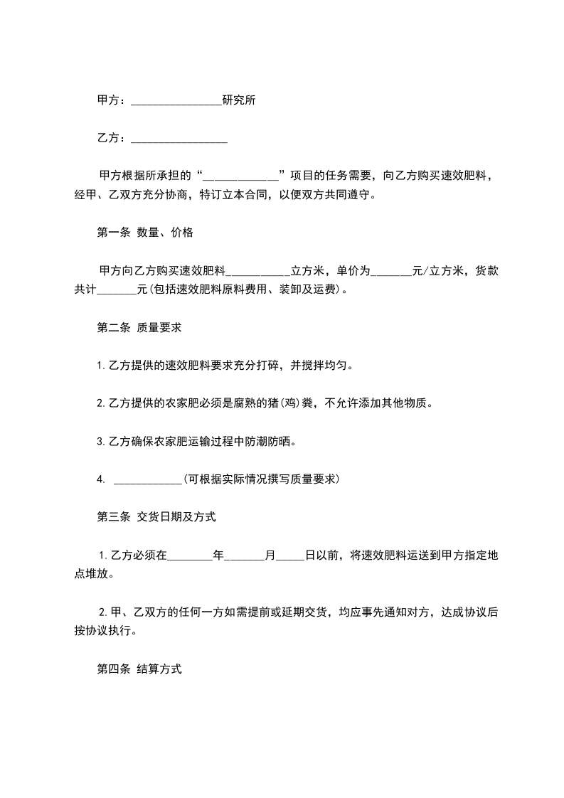 甲方根据所承担的“_____________”项目的任务需要,向乙方购买速效肥料,经甲、乙双方充分协商,特订立本合同,以便双方共同遵守。