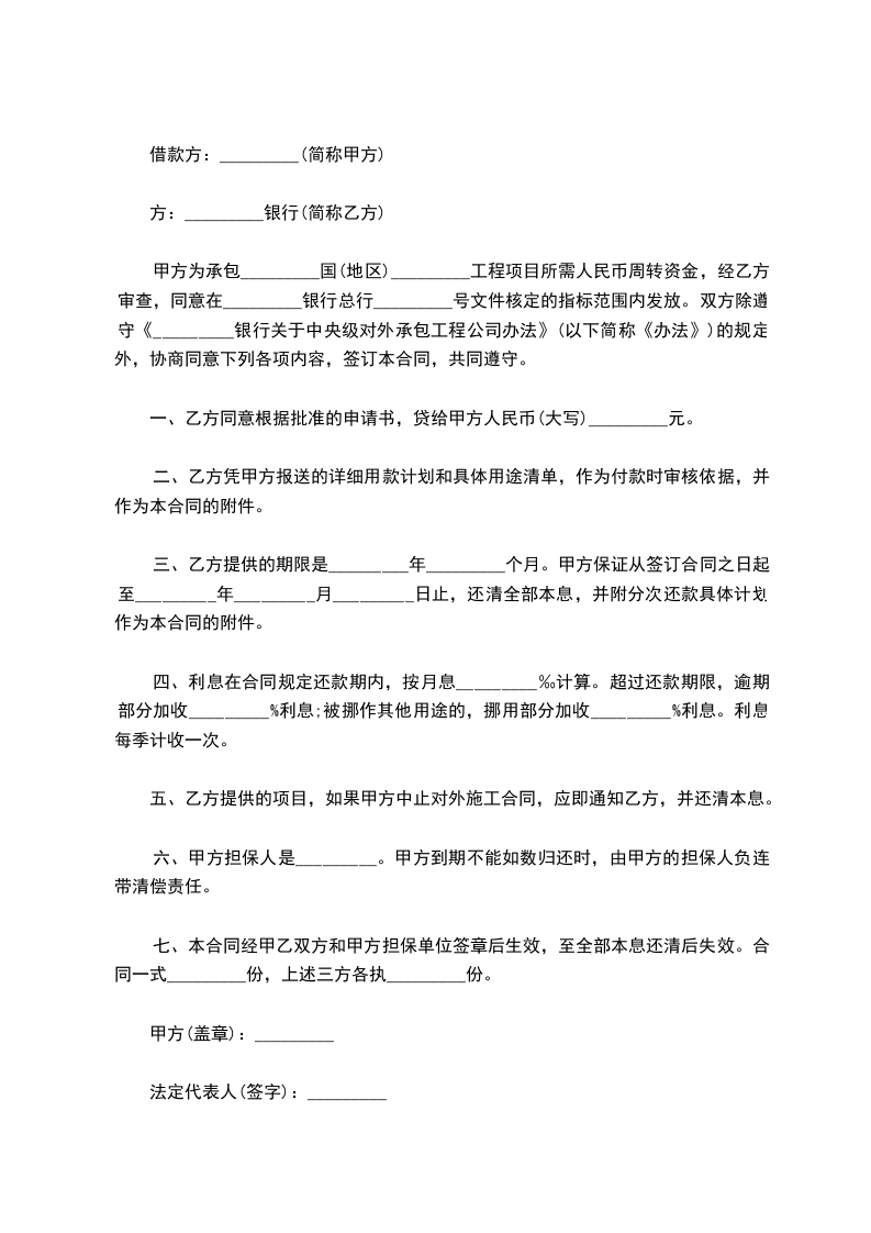 三、甲方等人对第一项的借款______元整承担连带偿还责任。
