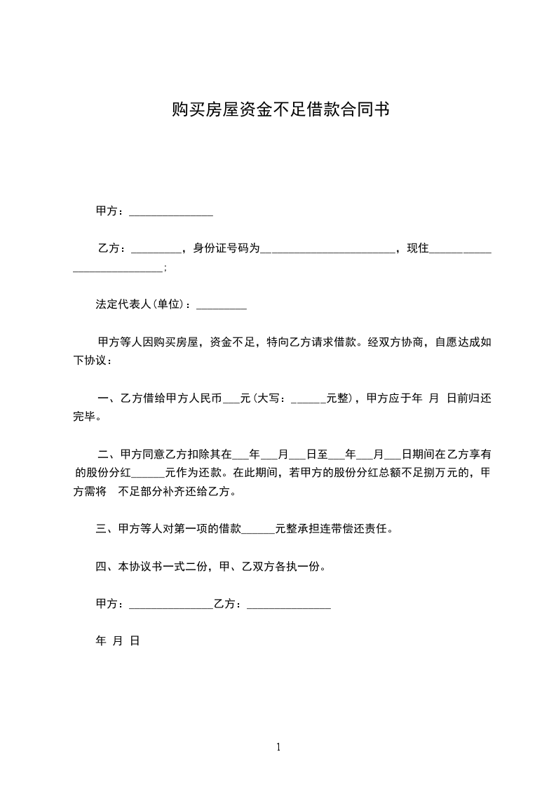甲方等人因购买房屋,资金不足,特向乙方请求借款。经双方协商,自愿达成如下协议: