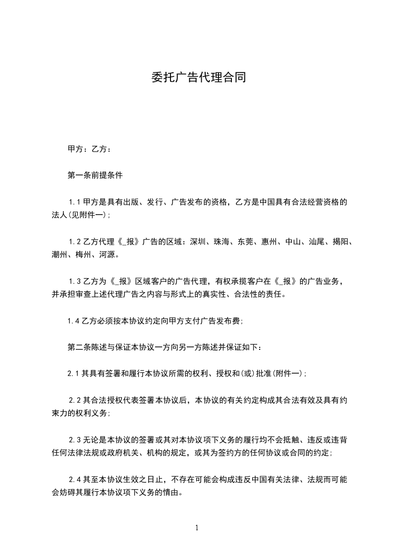 八、时间要求:第一次发布时间必须在 年 月 日以前完成,每推迟一天将承担总额1‰的违约金(下雨顺延)。