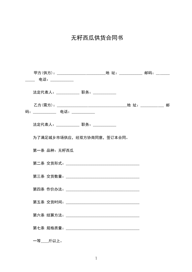 无籽西瓜供货合同书