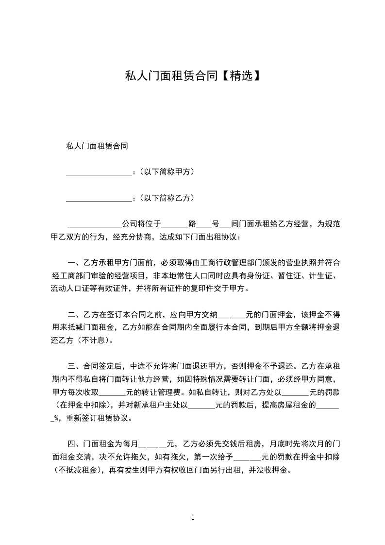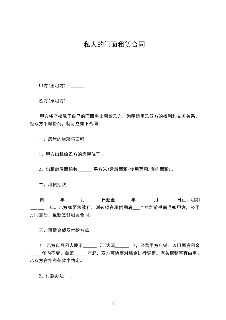 经甲乙双方协商,乙方租甲方门面房、间,位于、达成协议如次: