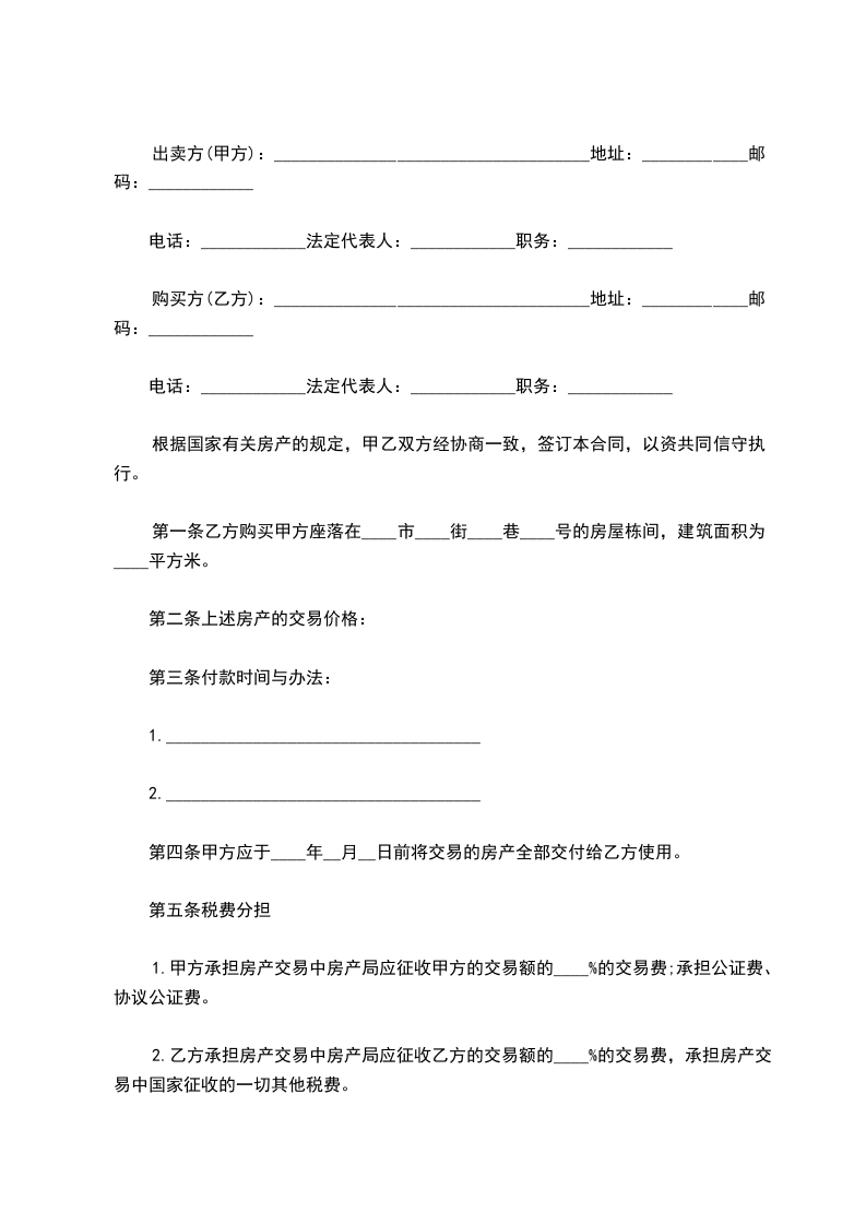 2.乙方承担房产交易中房产局应征收乙方的交易额的____%的交易费,承担房产交易中国家征收的一切其他税费。