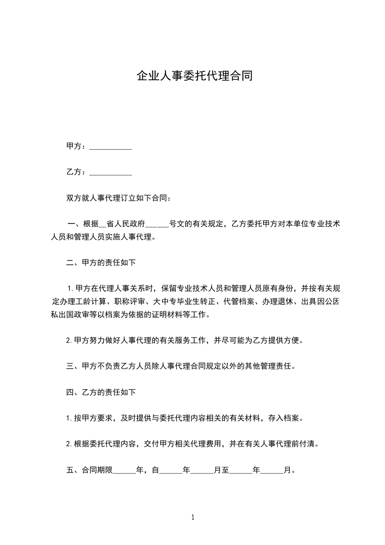根据《江苏省人事厅关于委托人事代理服务工作的意见》、《江苏省人事代理暂行办法》、《关于开展委托人事代理服务工作的意见》(连政办发____________号),甲乙双方本着自愿原则,就委托人事代理事宜订立合同如下: