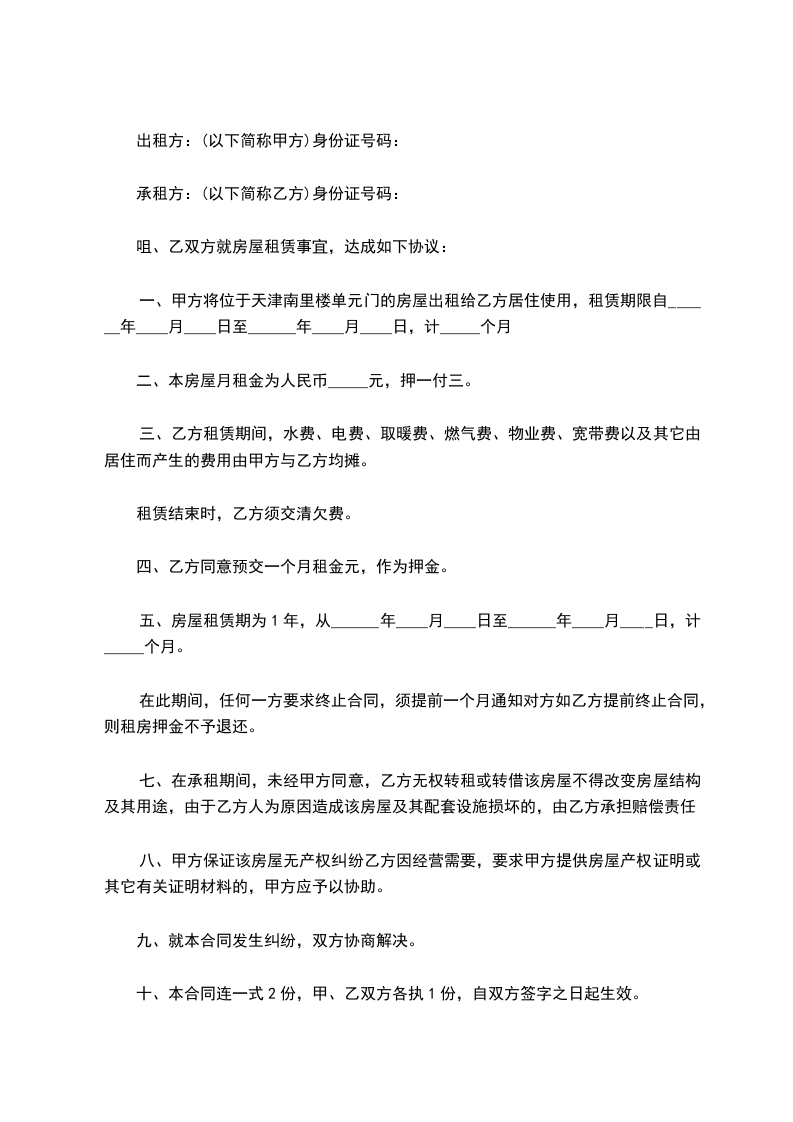 八、租赁房屋不得用于从事违法犯罪等活动场所,所有安全事故均由乙方自行负责。
