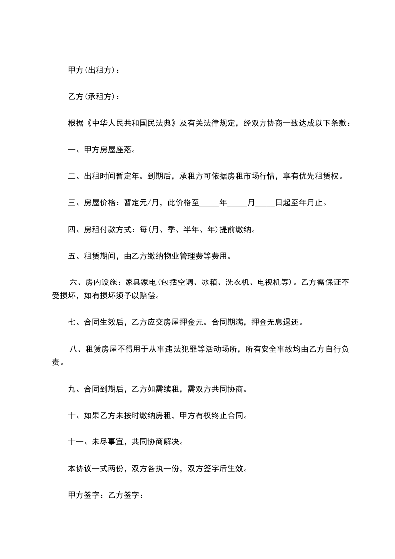 二、出租时间暂定年。到期后,承租方可依据房租市场行情,享有优先租赁权。