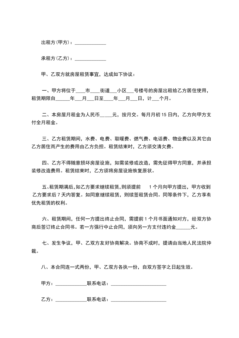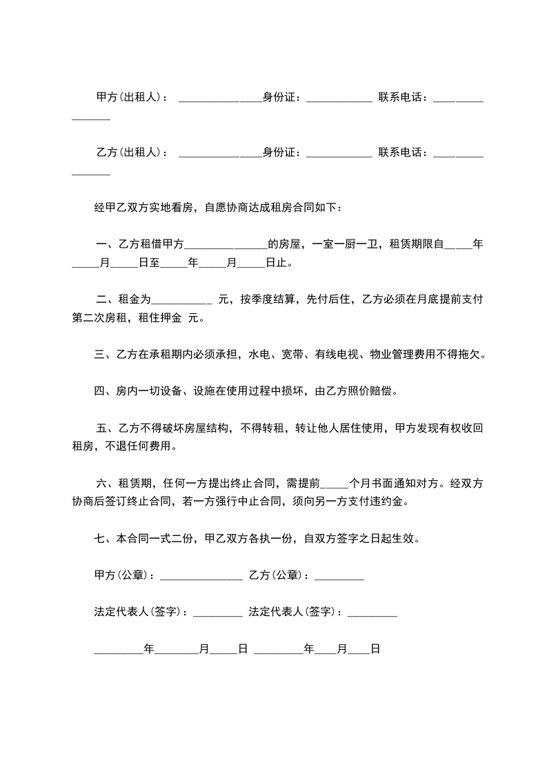 八、租赁房屋不得用于从事违法犯罪等活动场所,所有安全事故均由乙方自行负责。