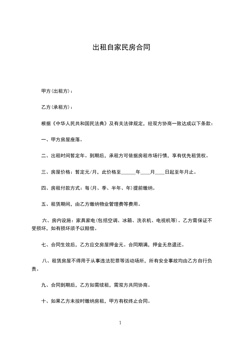十、如果乙方未按时缴纳房租,甲方有权终止合同。