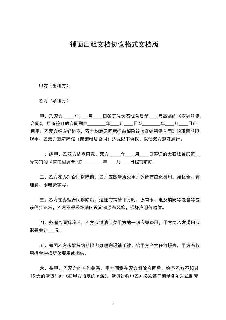 甲方(出租方): 乙方(承租方):