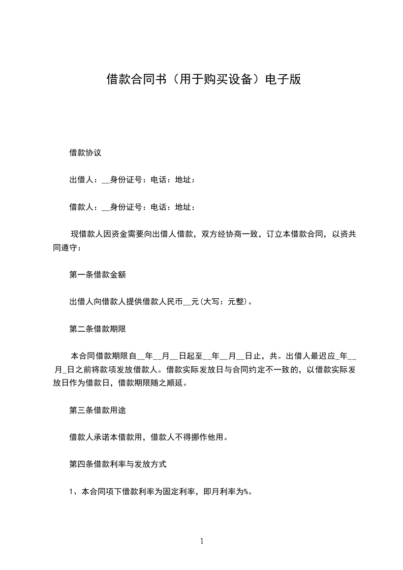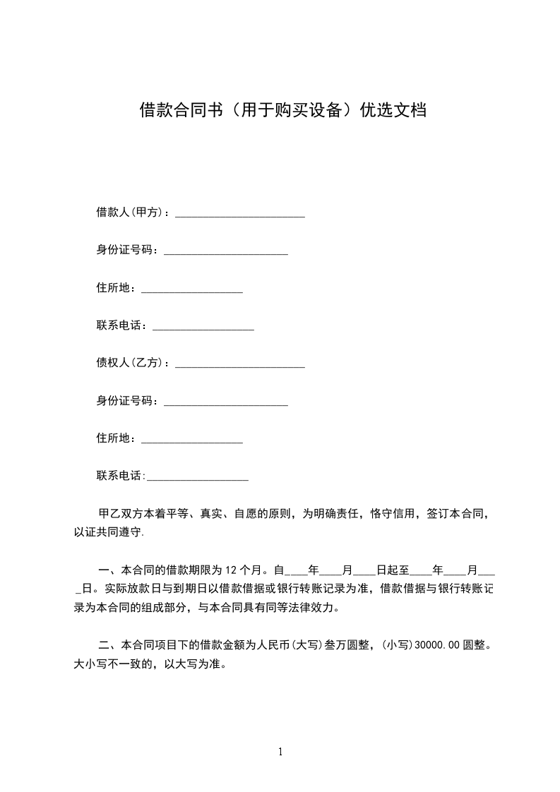 一、借款金额:乙方向甲方借款人民币(大写)(小写:)。
