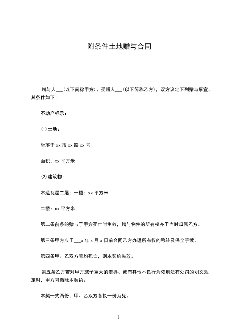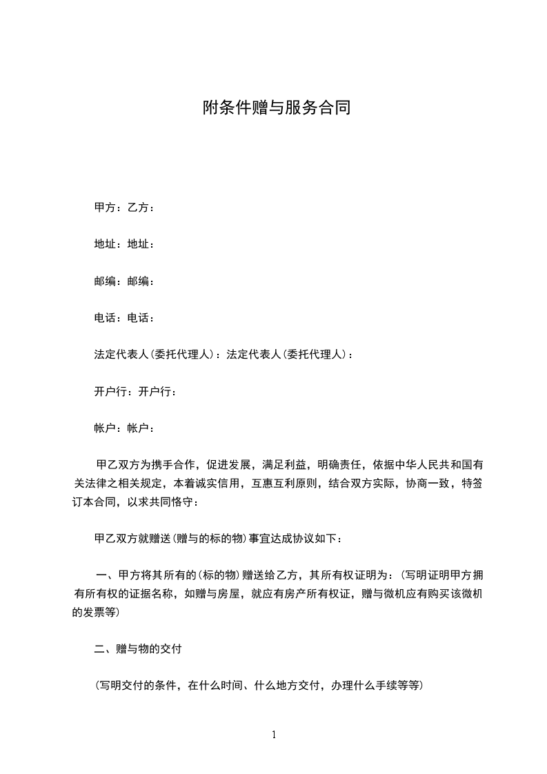赠与人___(以下简称甲方)、受赠人___(以下简称乙方),双方议定下列赠与事宜,其条件如下: