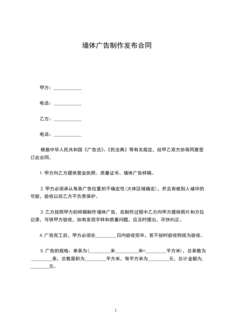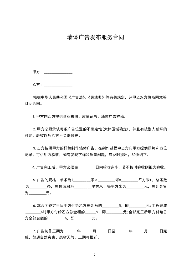 十六、墙体广告在发布期内如出现质量问题,甲方在15天内给予修复。