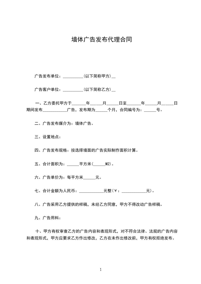 八、广告采用乙方提供的样稿,未经乙方同意,甲方不得改动广告样稿。