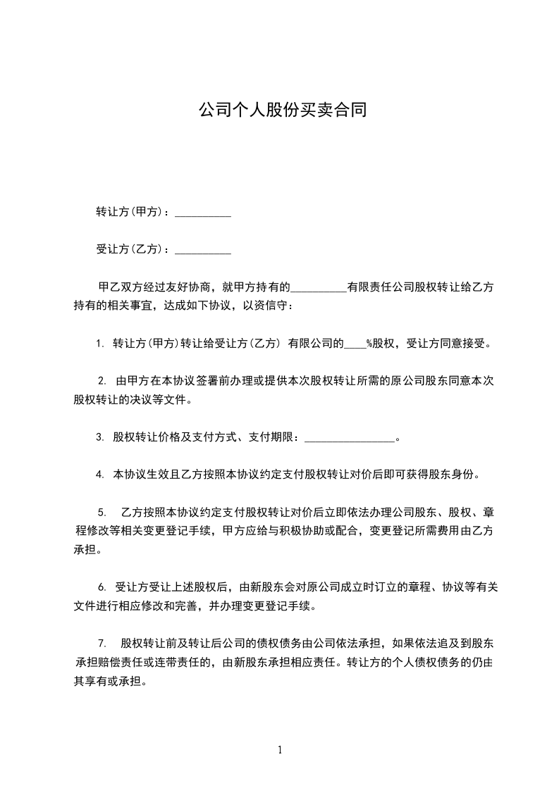 6、未经甲方同意而自行退股给甲方造成的损失,由乙方承担。