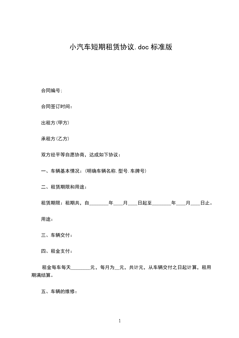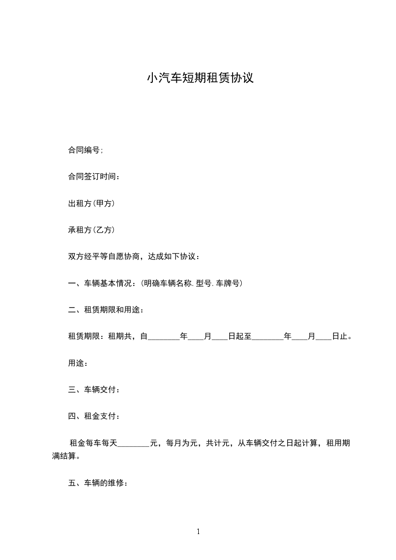租金每车每天________元,每月为_____元,共计元,从车辆交付之日起计算,租用期满结算。