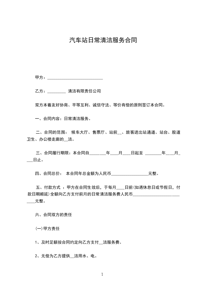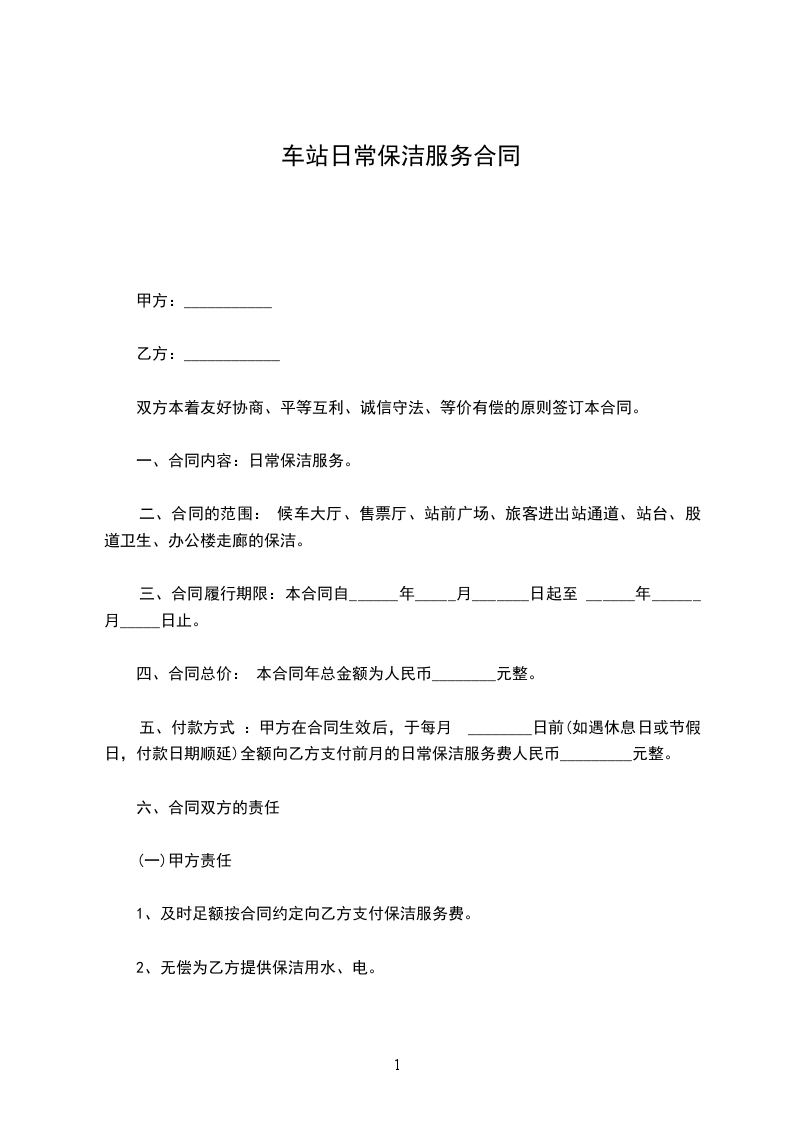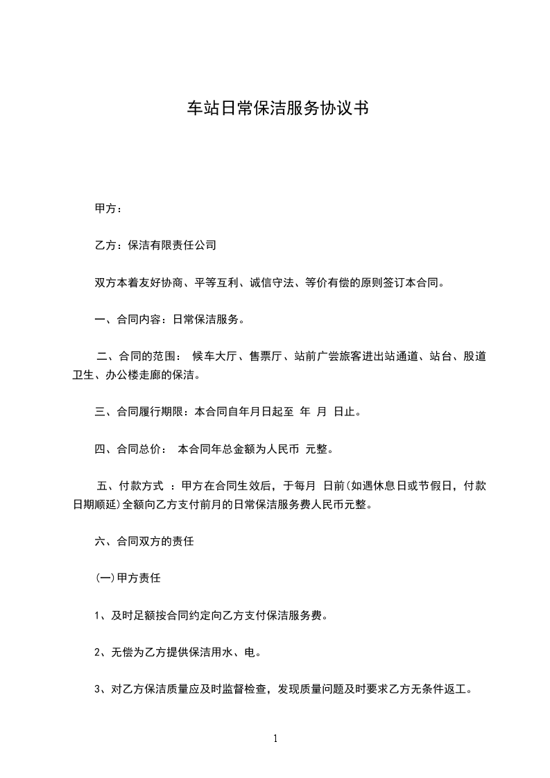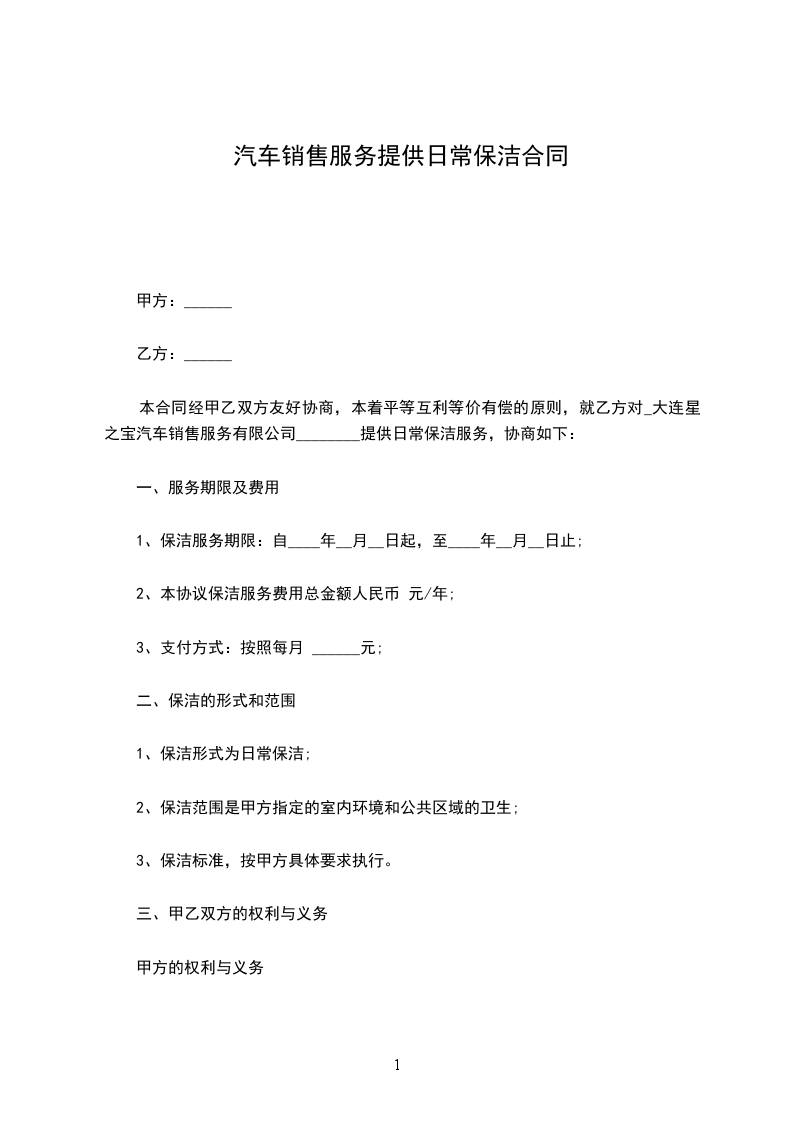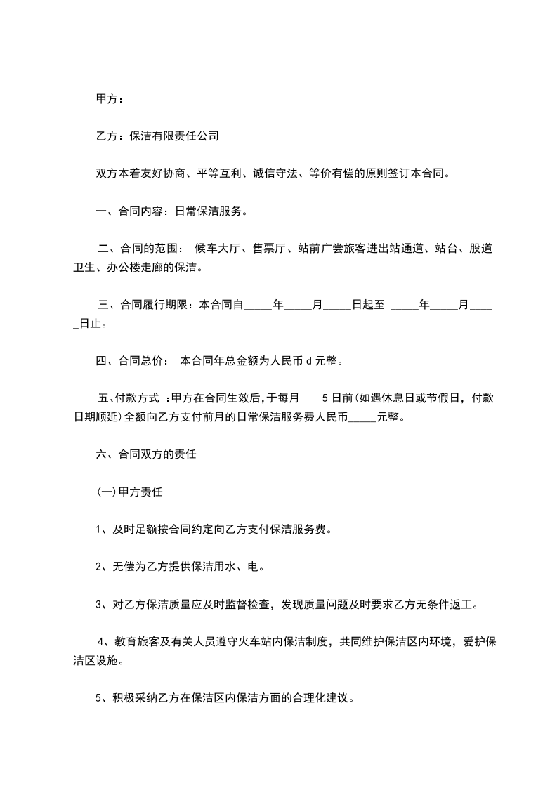 一、合同内容:日常保洁服务。