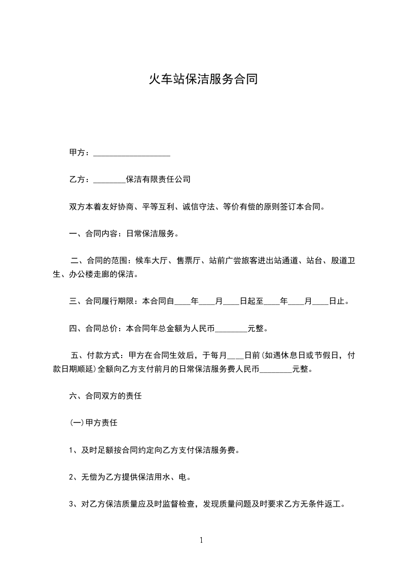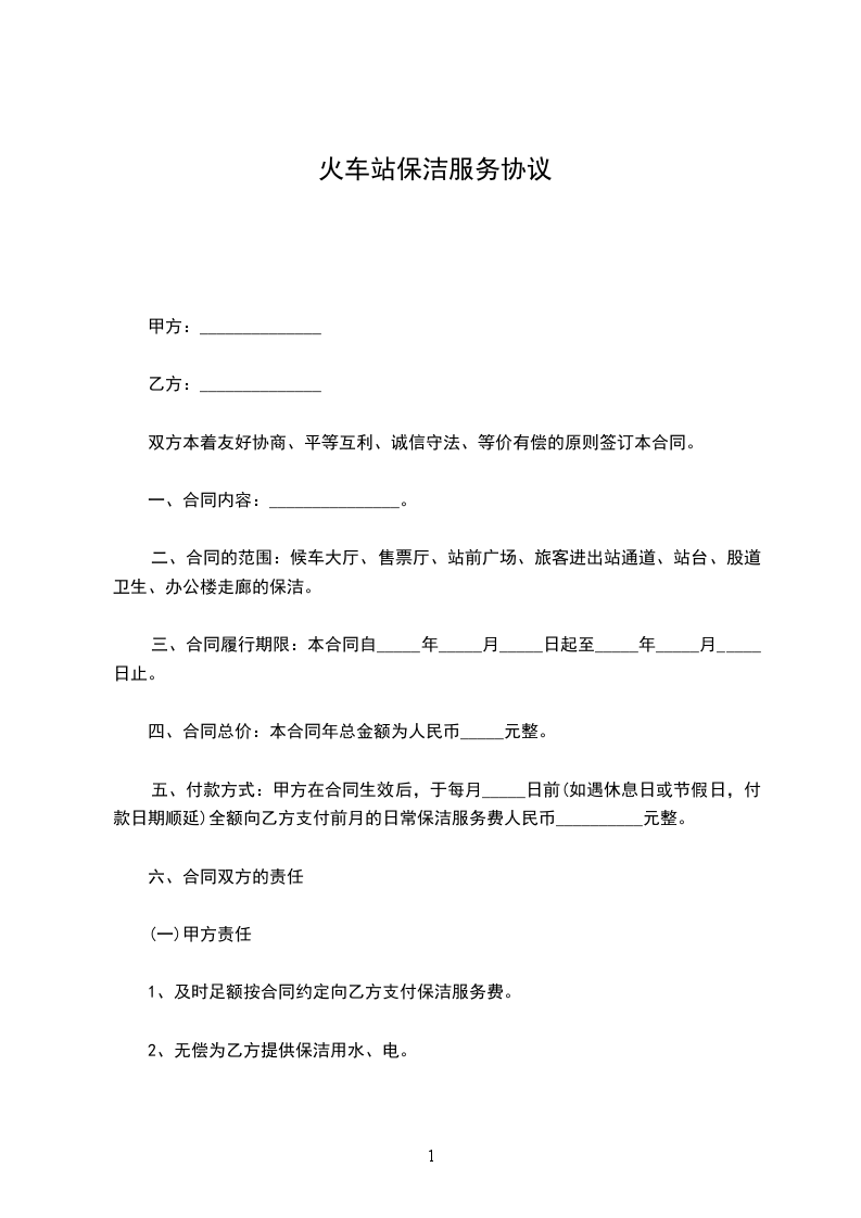 二、合同的范围: 候车大厅、售票厅、站前广尝旅客进出站通道、站台、股道卫生、办公楼走廊的保洁。