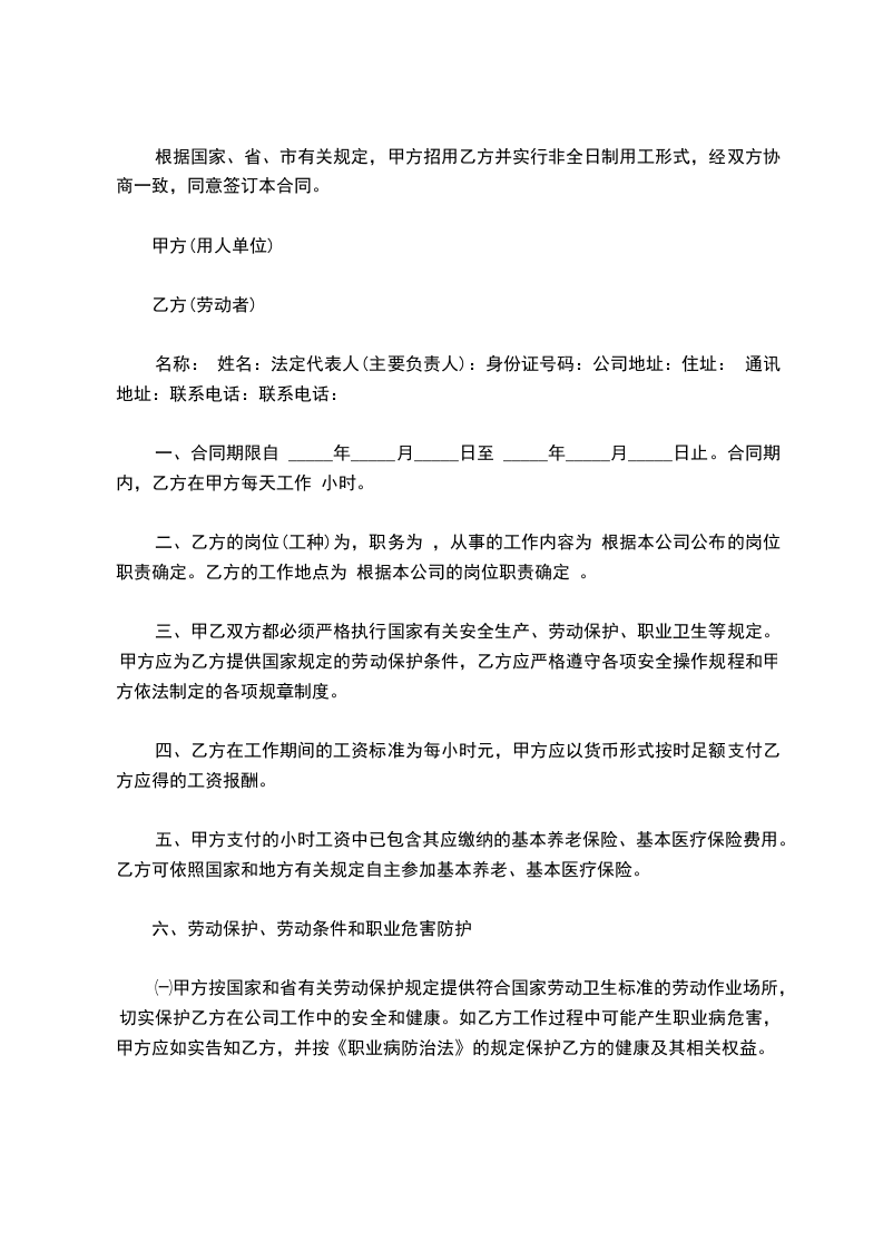 根据国家、省、市有关规定,甲方招用乙方并实行非全日制用工形式,经双方协商一致,同意签订本合同。
