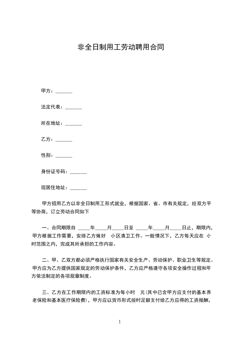 一、合同期限自 _____年_____月_____日至 _____年_____月_____日止。合同期内,乙方在甲方每天工作 小时。
