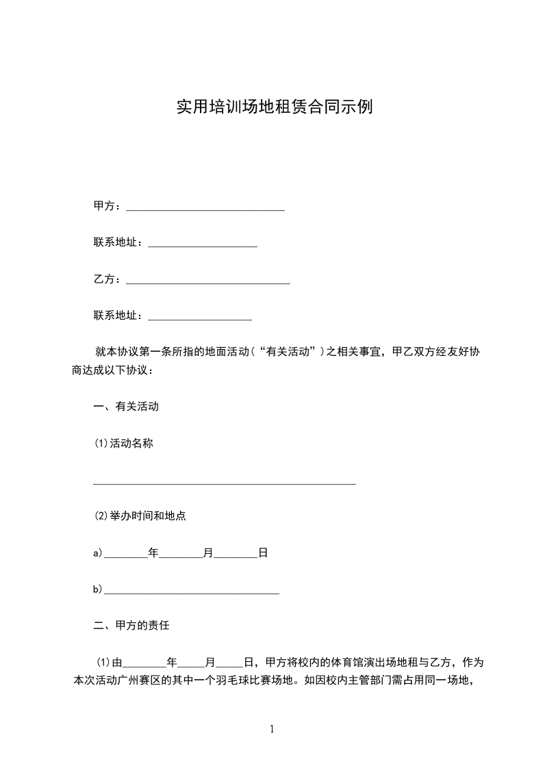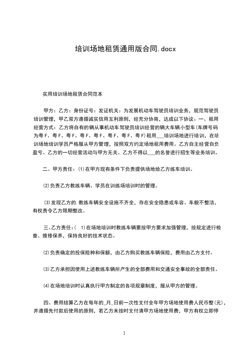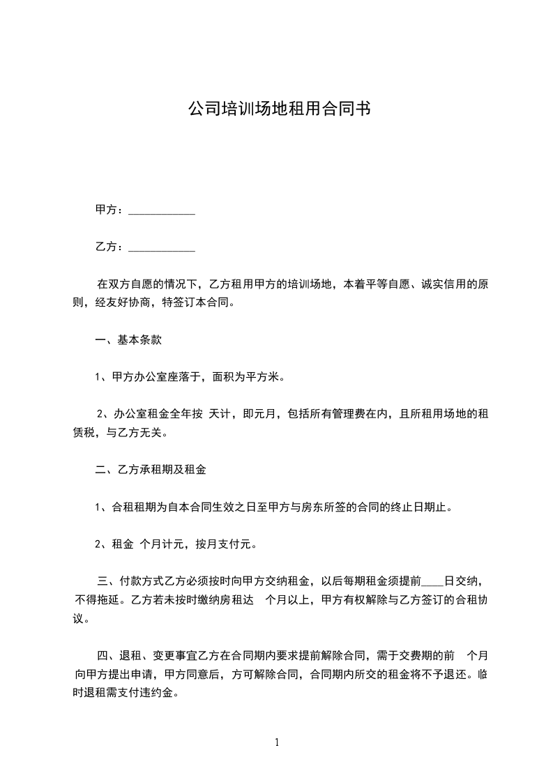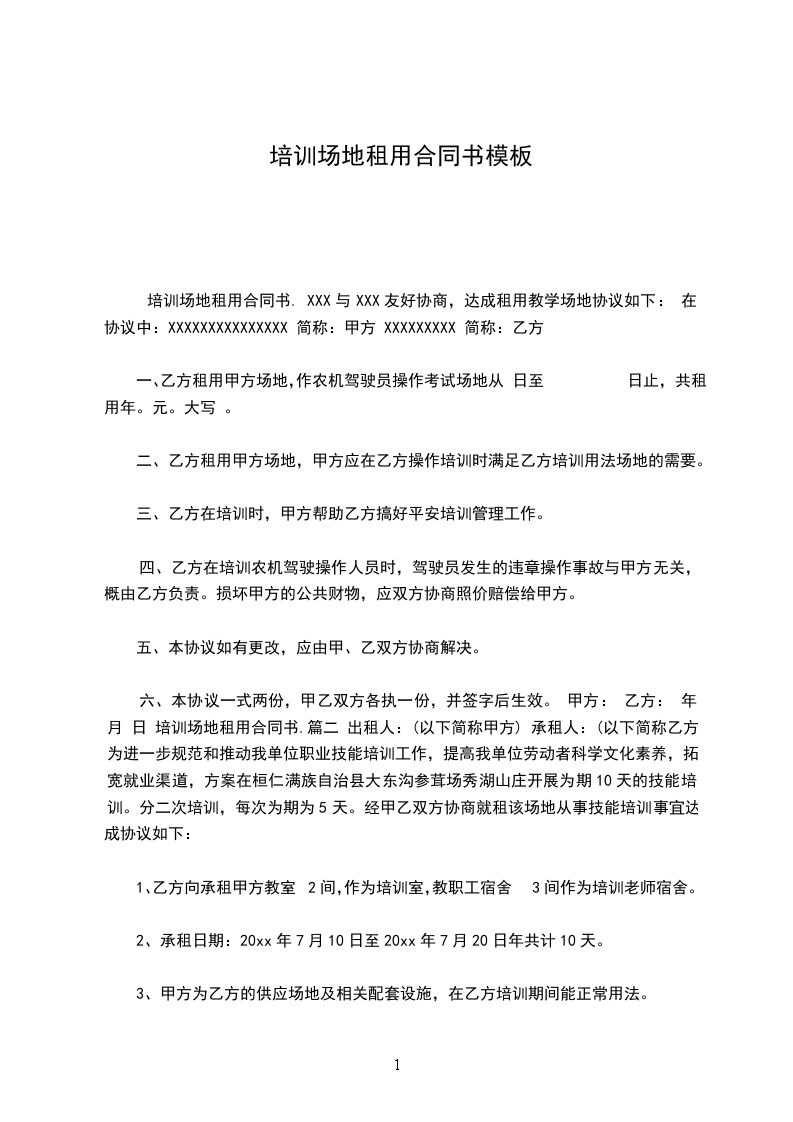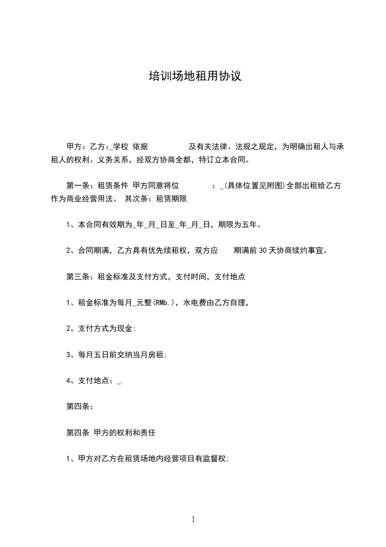 二、乙方租用甲方场地,甲方应在乙方操作培训时满足乙方培训使用场地的需要。