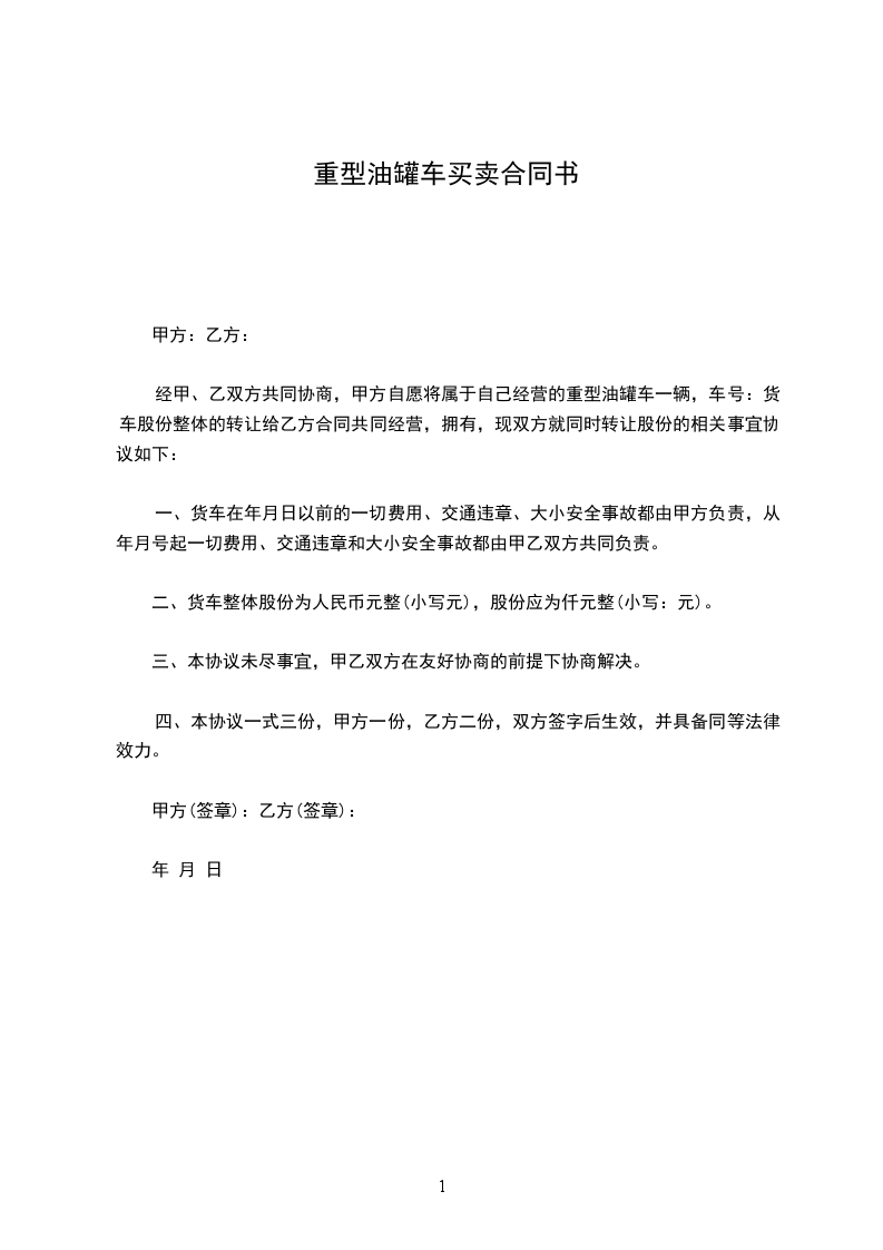 经甲、乙双方共同协商,甲方自愿将属于自己经营的重型油罐车一辆,车号:货车股份整体的转让给乙方合同共同经营,拥有,现双方就同时转让股份的相关事宜协议如下: