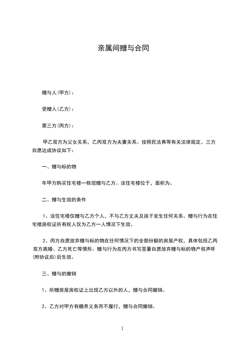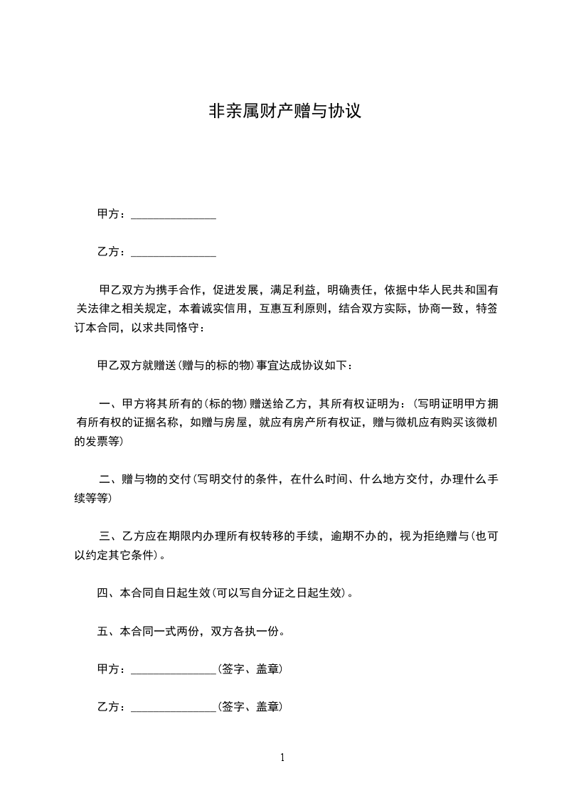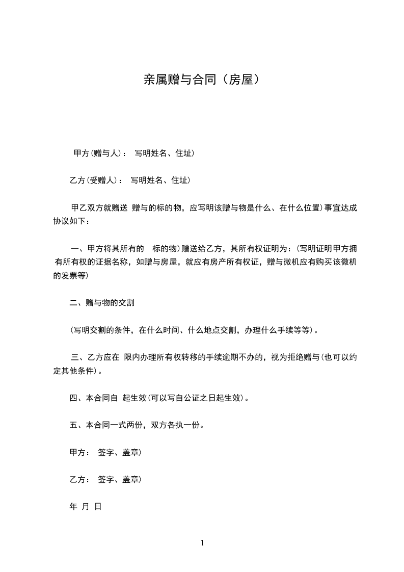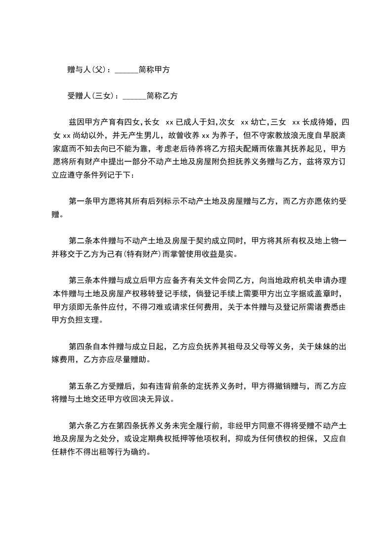 甲方(赠与人):(写明姓名、住址)