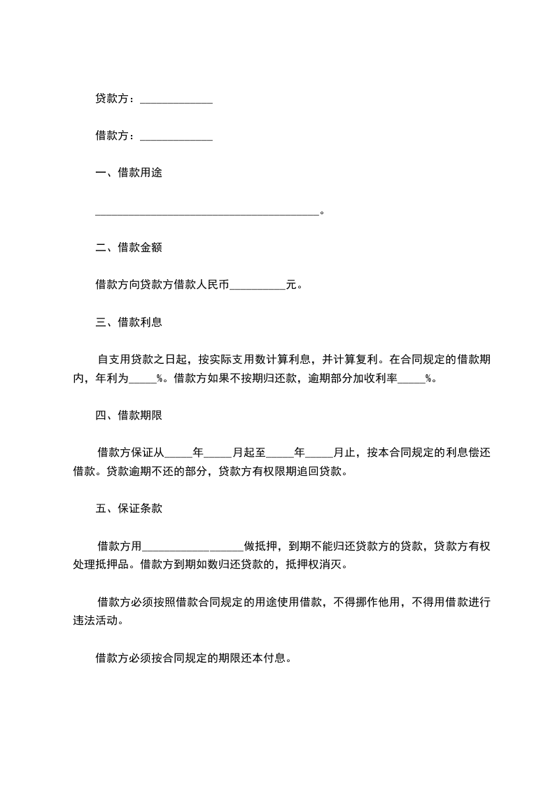 二、借贷期限为年,自_____年_____月_____日起至_____年_____月_____日止。