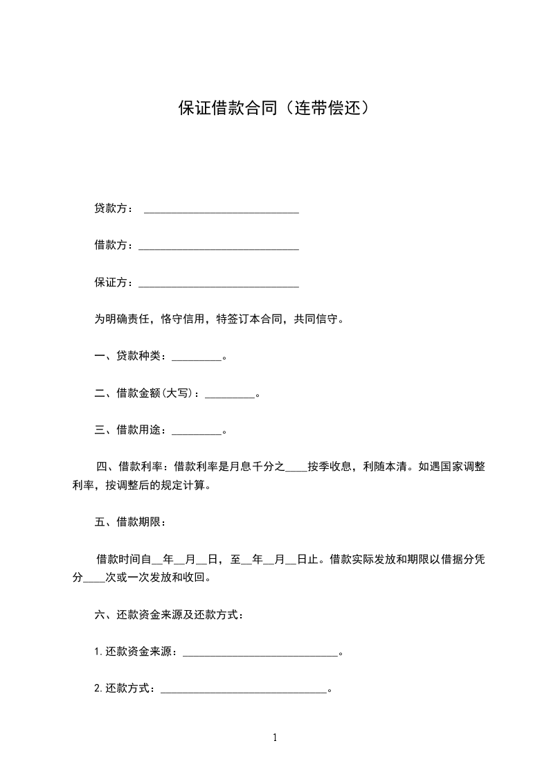 六、乙方应觅保证人一名,确保本契约的履行。而愿与乙方负连带返还本利的责任,并抛弃先诉抗辩权。