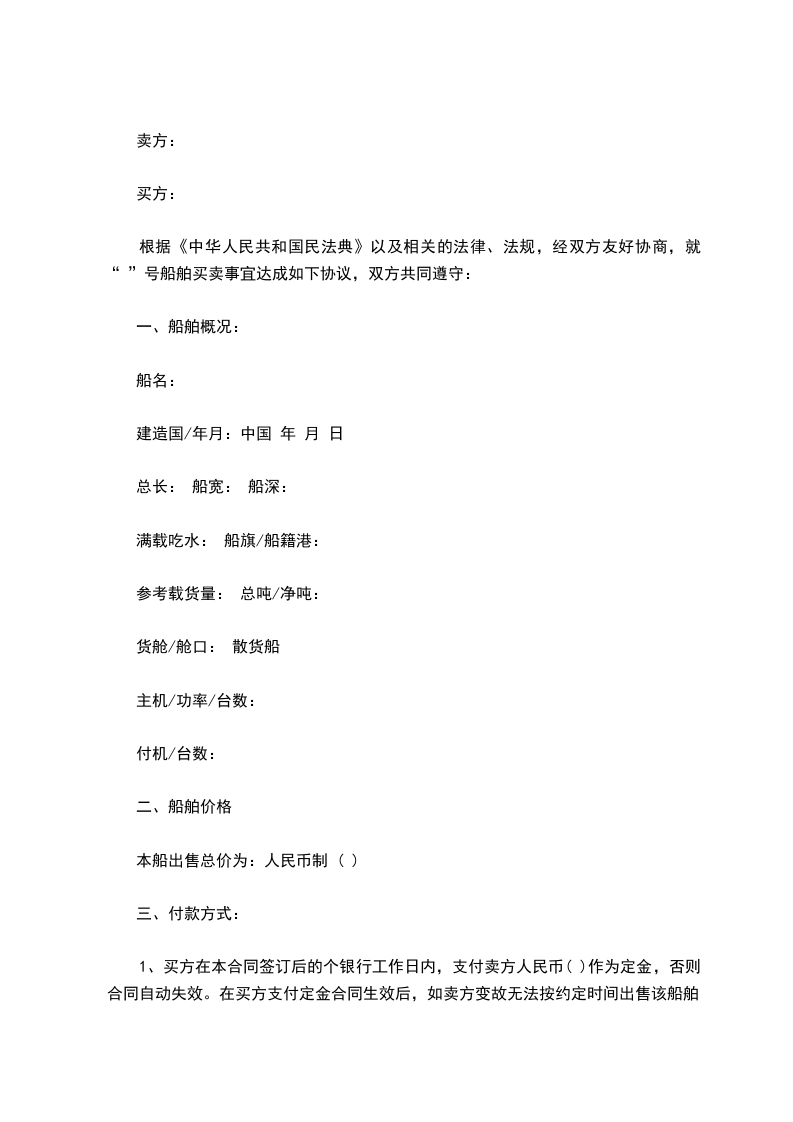 二、该渔船总价款为人民币_____万元,乙方支付甲方。