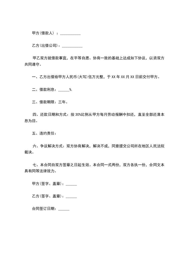 一、乙方出借给甲方人民币(大写)伍万元整,于XX年XX月XX日前交付甲方。