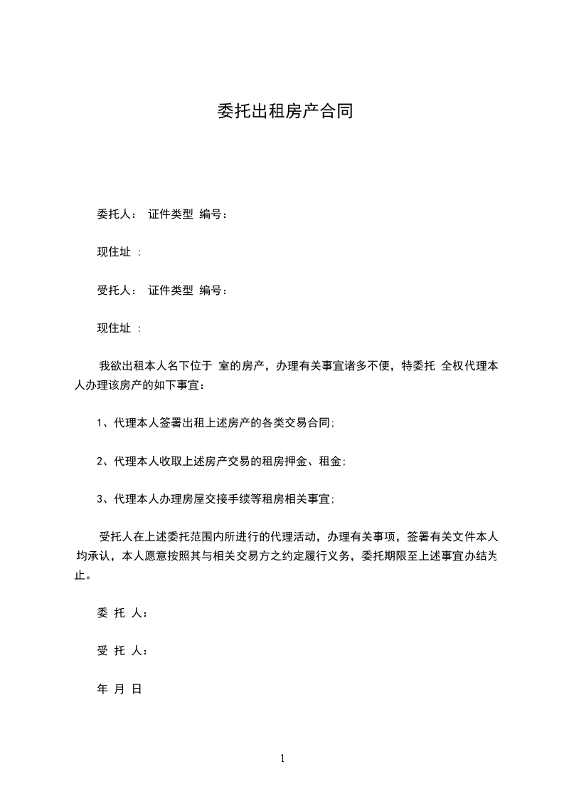我欲出租本人名下位于 室的房产,办理有关事宜诸多不便,特委托 全权代理本人办理该房产的如下事宜: