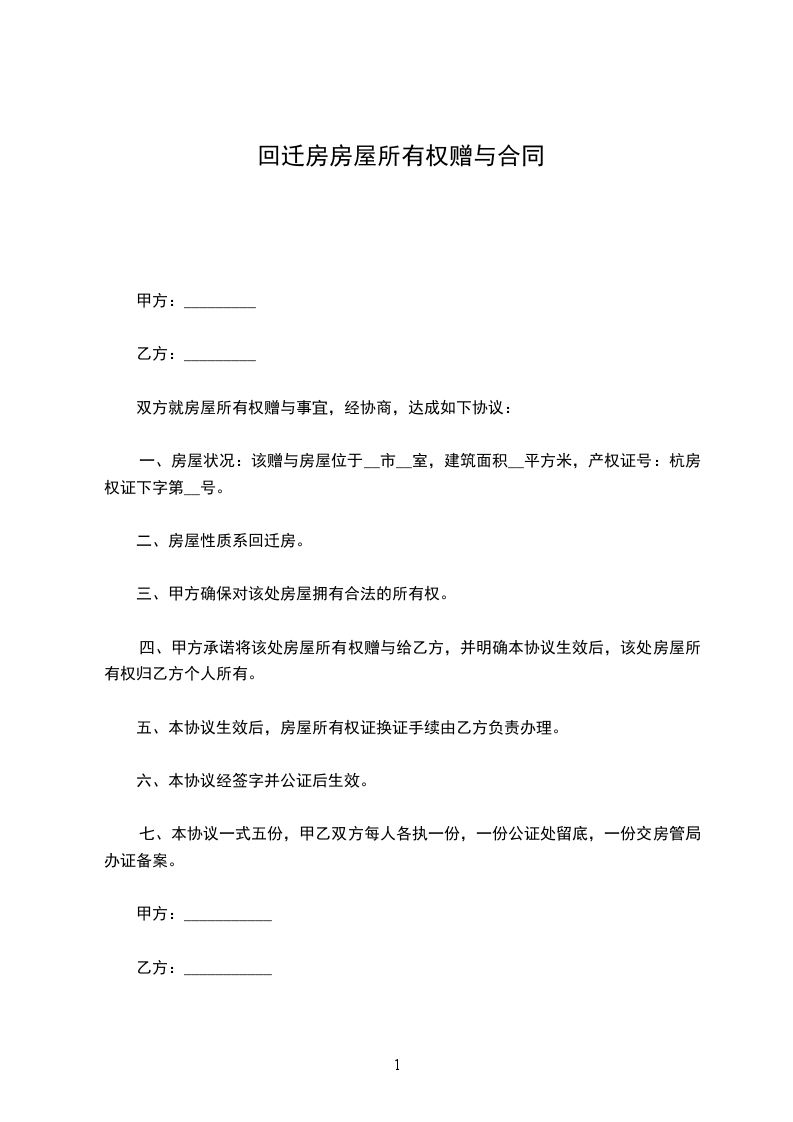 双方就房屋所有权赠与事宜,经协商,达成如下协议: