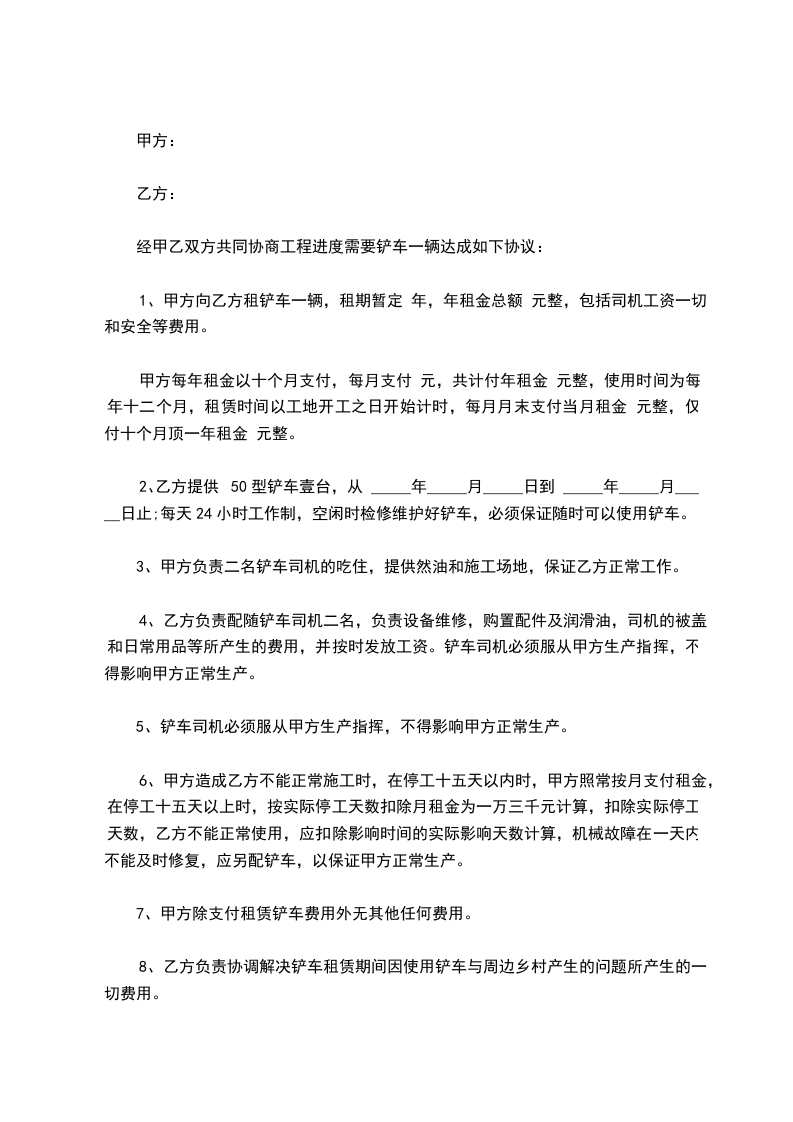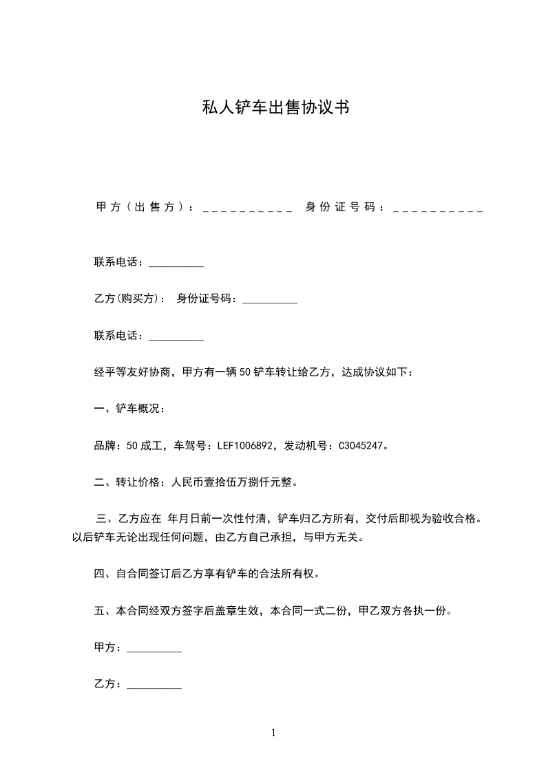 经平等友好协商,甲方有一辆50铲车转让给乙方,达成协议如下: