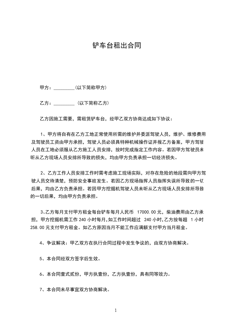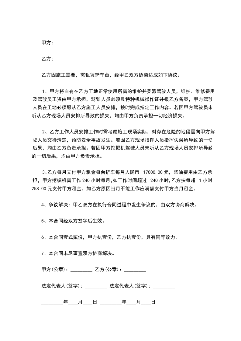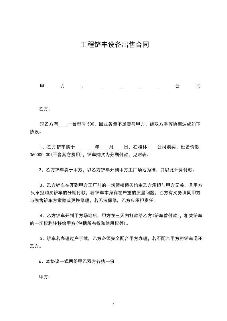 三、乙方应在 _____年_____月_____日前一次性付清,铲车归乙方所有,交付后即视为验收合格。以后铲车无论出现任何问题,由乙方自己承担,与甲方无关。