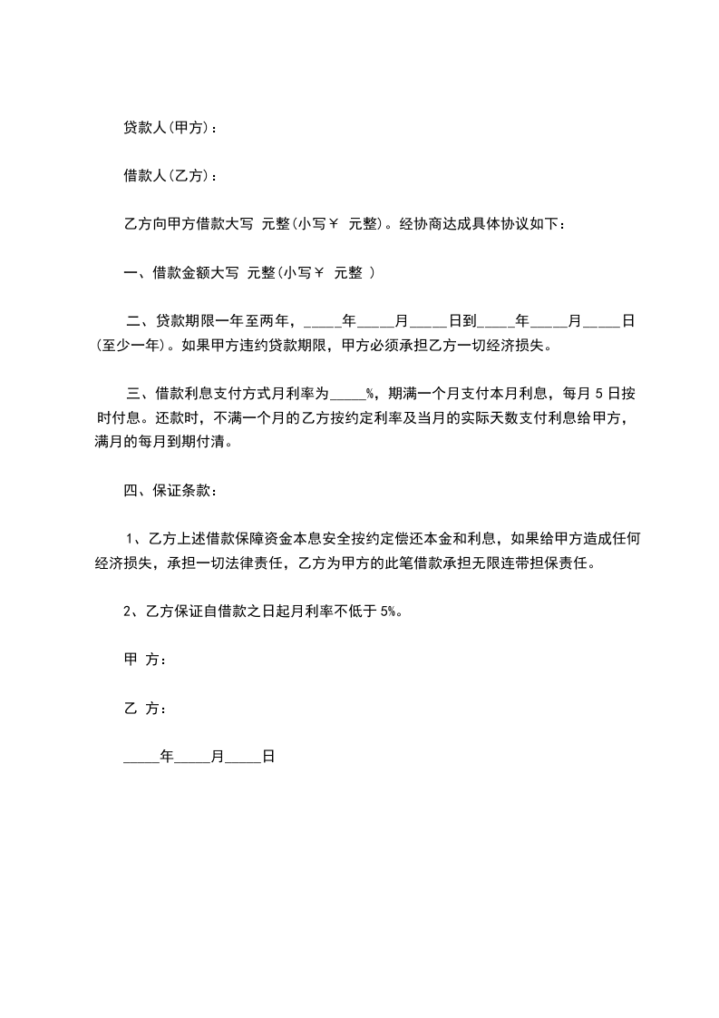 乙方向甲方借款大写 元整(小写¥ 元整)。经协商达成具体协议如下: